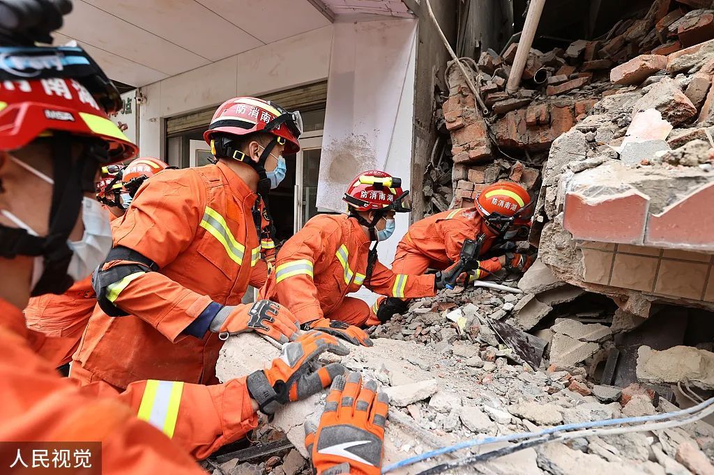 2022年4月29日,湖南省长沙市望城区一居民自建楼房突然垮塌。事发后,消防救援人员奋力迅速展开救援。