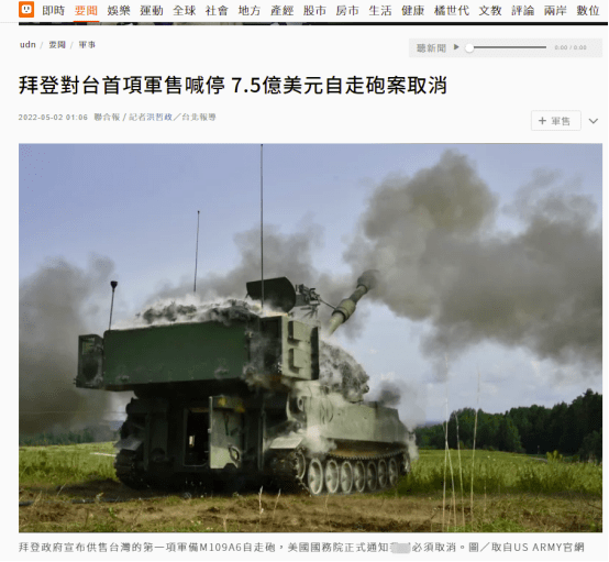 报道称,拜登政府去年8月通过美国国防安全合作局(DSCA)宣布,将出售台湾包括新型M109A6自行火炮等军备共7.5亿美元,但台军方近日表示接获美国务院通知,受俄乌战争影响,美无法对台供应新型155公厘(毫米)自行火炮,台湾原有意将全案押后至2028年,但美方要求全案现在就要停止,因此全案拟撤案。