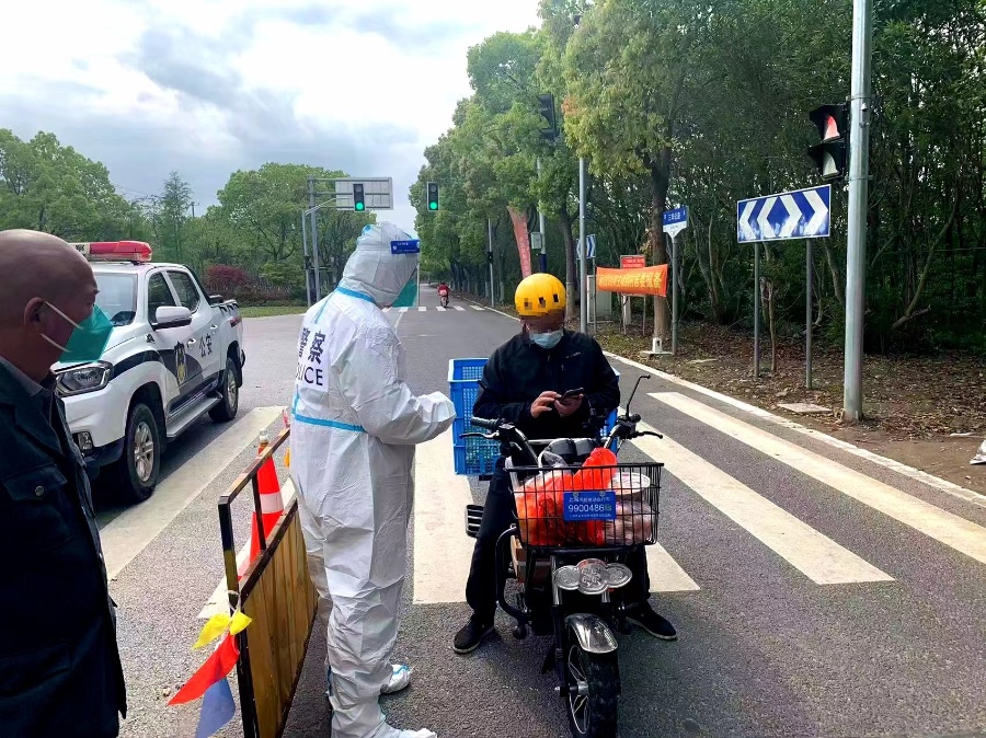 同日,奉贤公安分局民警在路口执勤时,经检查发现一名外卖员的电子通行证与其本人身份信息不符,且神色紧张回答问题支支吾吾,随后民警将该男子传唤作进一步调查。经查,该男子成某林在没有相关资质的情况下,为了追求利益,冒用自己姐夫的电子通行证进行外卖配送业务。最终,成某林因实施了拒不执行紧急状态下的决定、命令的违法行为被依法处以行政处罚。