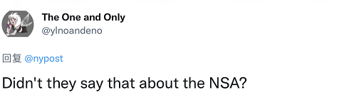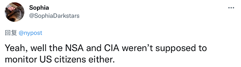 还有人说,“嗯,那么,(美国国防部下)国家安全局(NSA)和美国中央情报局(CIA)也不该监视美国公民。”