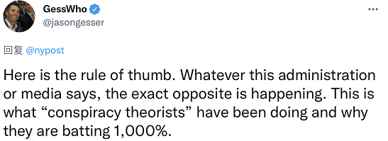 在批评声中,马约卡斯通过美国媒体为“虚假信息治理委员会”的设立辩护,但他的说法并没有平息美国政界和不少网友对该委员会的质疑,反而引来了又一轮批评声浪。看到马约卡斯的说法,有人评论称,“这是经验法则。不管这届政府或媒体怎么说,情况恰恰相反。这就是所谓‘阴谋论者’一直在做的事情,也是为什么他们能1000%压中。”