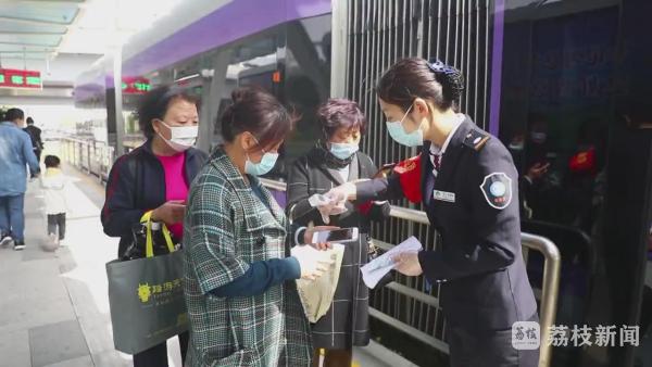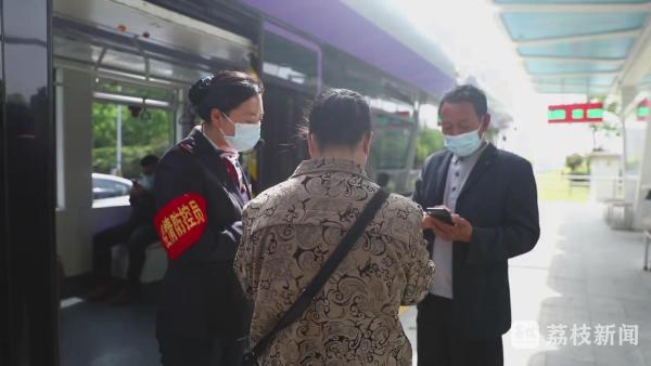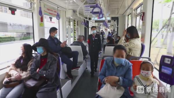 今天(5月2日)上午10点,正是五一假期里的出行高峰,在淮安有轨电车一号线,乘务员梁梦雪正在列车上进行志愿服务,查验健康码、测量体温,提醒乘客带好口罩,引导大家有序就坐。今年五一期间,她和她的小伙伴们成为了电车防疫工作的第一责任人。