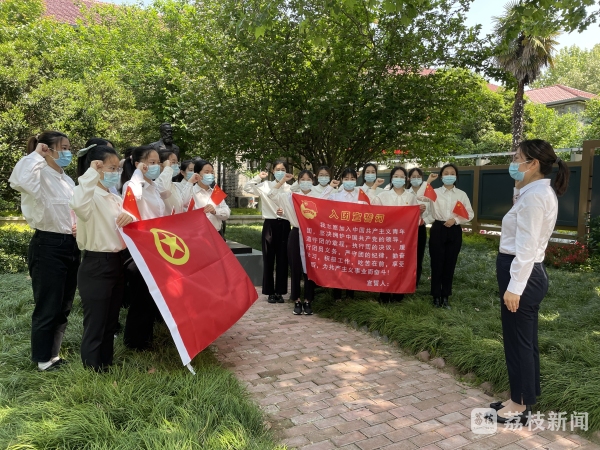 随后,扬州大学大学生红色理论宣讲团成员周娜在学院马克思、恩格斯塑像前为全体团员宣讲《青春热血,百年芳华》微团课,她带领团员们回顾百年青运史,学习典型人物红色事迹,激发团员青年聚力奋进新征程的担当。