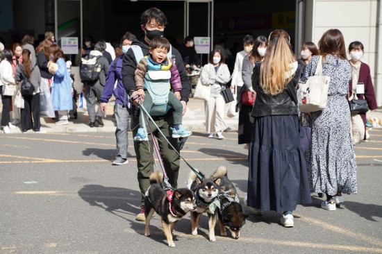 4月1日,在日本东京国际会展中心,一名男子牵着宠物犬参加东京国际宠物展。新华社记者张笑宇摄