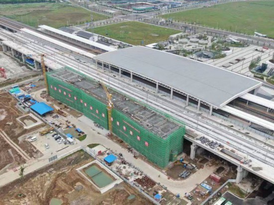 新建南沿江城际铁路常熟站建筑面积为7799平方米,与既有沪苏通铁路常熟站贴临,系拆除既有沪苏通北侧简易墙后向北侧扩建而成,其公共区域将与既有常熟站公共区域相互连通。建成后的常熟站总面积约为19000平方米,基本呈现南北对称的形式,预留南北侧双向进站条件。此次站房建设以站房基础、主体、装修、安装施工为关键线路,辅助进行雨棚、生产房屋、停车场及其他配套工程施工。去年9月28日中铁十局中标,常熟市交通运输局迅速协调组建项目部,在完成相关手续办理后即投入工程建设。春节期间,项目部提前做好了施工人员返岗筹划和节后施工、防疫物资储备。今年2月10日,项目率先进入复工状态,最大程度克服疫情影响,有效保障站房建设快速有效推进。