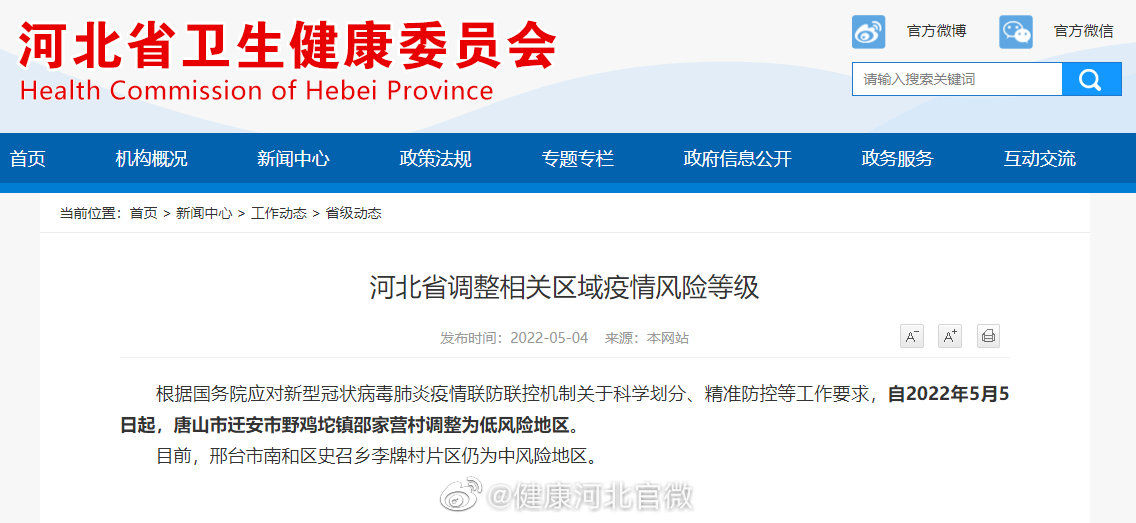 荔枝新闻讯 据河北省卫生健康委员会官方微博消息,2022年5月4日0—24时,河北省无新增本土新型冠状病毒肺炎确诊病例;新增本土无症状感染者19例(邢台市)。无症状感染者解除医学观察41例。