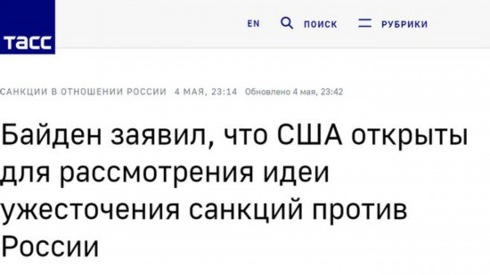 路透社报道称,当地时间5月4日,被问及欧盟提议对俄实施迄今为止最严厉制裁,包括对俄分阶段实施石油禁运后,美方有何计划时,拜登回答称,“我们一直对额外制裁持开放态度。”