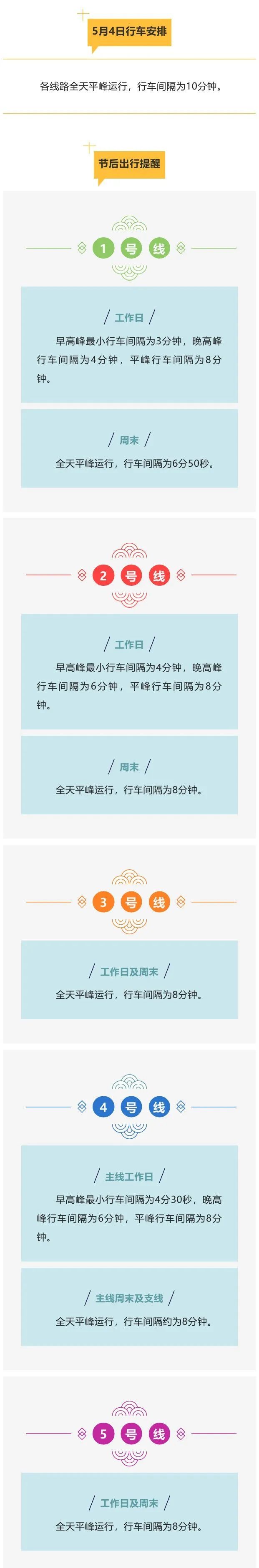 根据当前疫情防控形势及线网客流情况,苏州轨道交通对线网运营方案进行调整,5月4日地铁全天平峰运行,节后部分恢复早晚高峰,具体如下:
