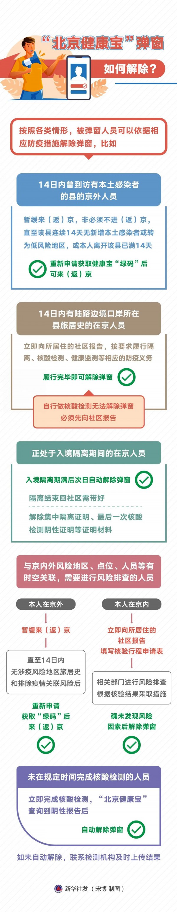 当前北京新冠肺炎疫情形势严峻复杂,市民出行或面临“北京健康宝”被弹窗的情况。哪些情形可能被弹窗?一旦被弹窗如何解除?