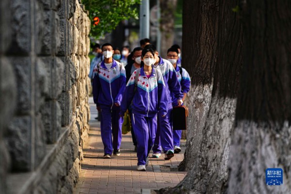 5月5日,东北师范大学附属中学高三年级的学生有序进入校园。新华社记者 许畅 摄