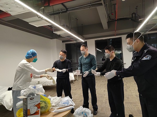 “一开始收治的病人又多,进驻的各个部门、各个岗位的工作人员也还在磨合,难免会力有不逮,病人之间也会有些小摩擦,或者有人有情绪等等,我们调解一下,基本也都解决了。”来自治安支队的民警顾殷俊介绍道。