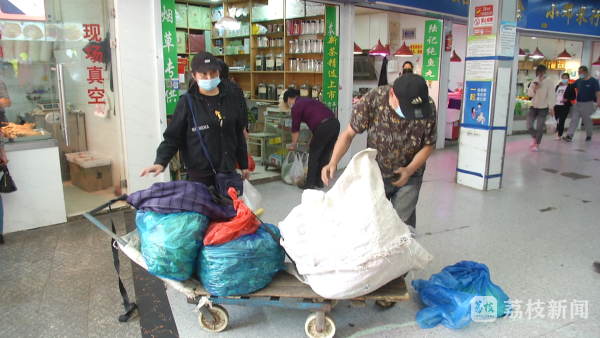 今天(5月6号)上午10点多,记者来到南京秦虹农贸市场。商贩陈师傅正在收拾几个大蛇皮口袋。他告诉记者来迟了,今天的乌饭叶全部卖完了。