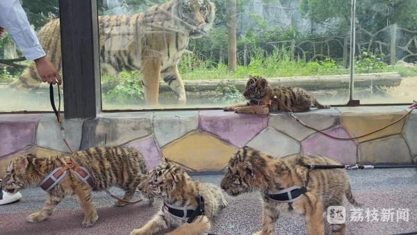我苏网讯 5月8日母亲节,常州淹城野生动物世界四只小东北虎霸气出街,带上精心准备的礼物前往东北虎馆看望自己的妈妈。