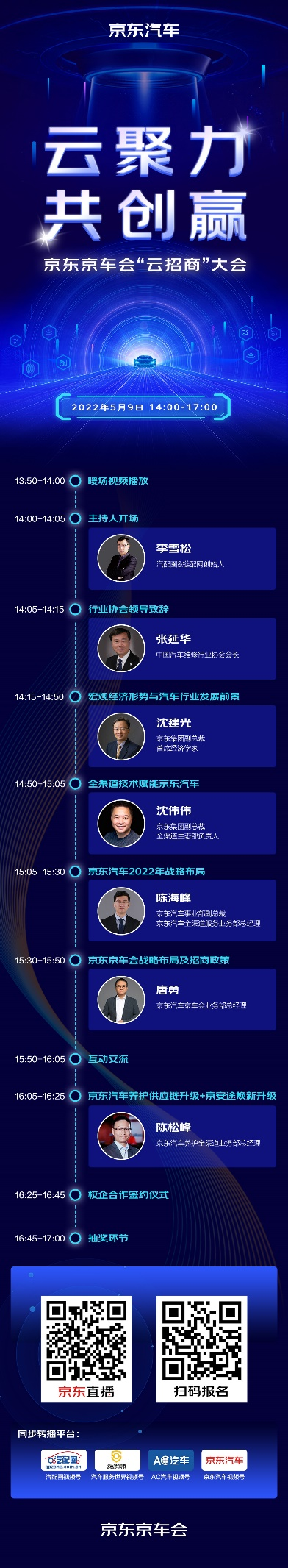 近年来,伴随着经济压力,以及疫情常态化防控,实体企业发展面临很多困境。而对于线下汽车维保门店来说,同样面临经营难题。在此背景下,5月9日,以“云聚力 共创赢”为主题的京东京车会2022“云招商”大会逆风举办。借助此次大会,京东汽车对外正式发布了2022年战略布局,包括京东京车会“五新战略”及2022年招商政策等,为加盟商等合作伙伴带来从供应链、技术到服务等全方位助力保障,携手同行,共克难关。另外,在当天的大会上,中国汽车维修行业协会会长张延华,京东集团副总裁、首席经济学家沈建光,京东集团副总裁、京东零售全渠道生态部负责人沈伟伟,京东汽车事业部副总裁、京东汽车全渠道服务业务部总经理陈海峰,京东汽车京车会业务部总经理唐勇,京东汽车养护全渠道业务部总经理陈松锋等受邀分享,聚焦当前汽车后市场面临的挑战和问题,共同探讨汽车后市场未来的发展路径。