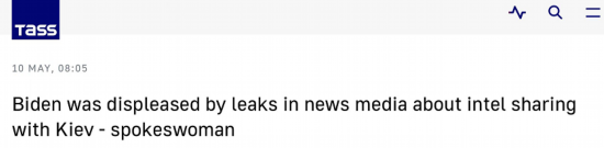 《纽约时报》等美媒此前援引美国官员的说法报道,美国提供的情报对乌军与俄作战起到“决定性作用”,五角大楼等方面随后表态否认这些说法。塔斯社10日报道,白宫新闻秘书普萨基证实,美国总统拜登对美媒泄露美乌之间的情报共享“感到不满”。