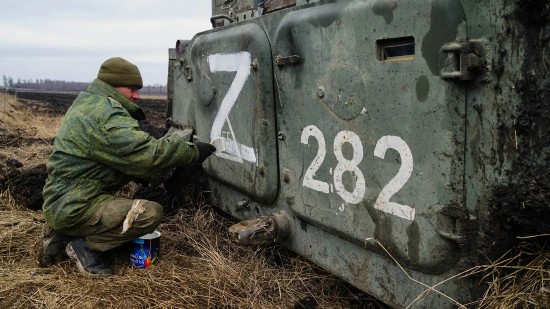 俄罗斯军队的车辆上用白色油漆涂写的“Z”