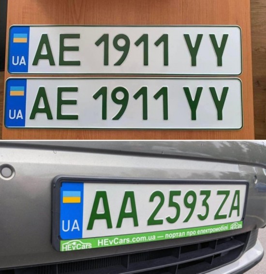 乌克兰电动汽车新的牌照(上)和旧牌照(下)