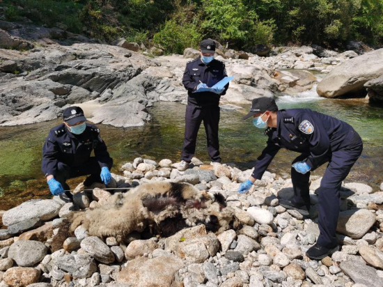 5月6日12时许,厅森林公安局第三分局长保派出所接到大熊猫国家公园长青分局华阳管护站职工电话报警:他们在保护区例行线路监测巡护时,在洋县华阳镇柴家湾附近河道发现一只死亡大熊猫,请求处理。