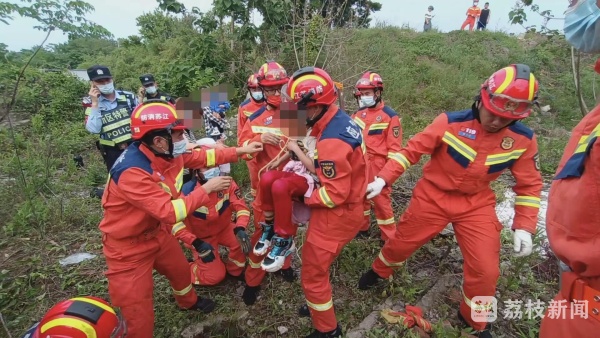 消防员利用绳子率先对小孩进行营救,17时30分将小孩救出,男孩获救,一直哭喊,请求消防员救救妈妈。勘察情况后,消防员架设三脚架对女子进行营救,17时35分女子被救出,现场无人员伤亡。