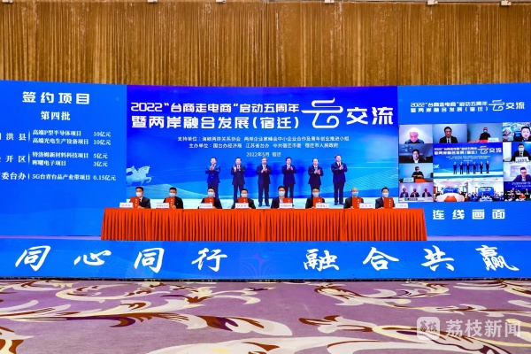 5月10日下午,2022“台商走电商”启动五周年暨两岸融合发展(宿迁)“云交流”活动举行。活动现场签约22个项目,协议总投资133.85亿元。