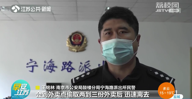 民警调阅监控发现这是一名戴帽子的男子所为,而且这已经不是他第一次顺手牵羊了:“该男子每晚18时到19时左右,会到外卖点偷取两到三份外卖后迅速离去。”