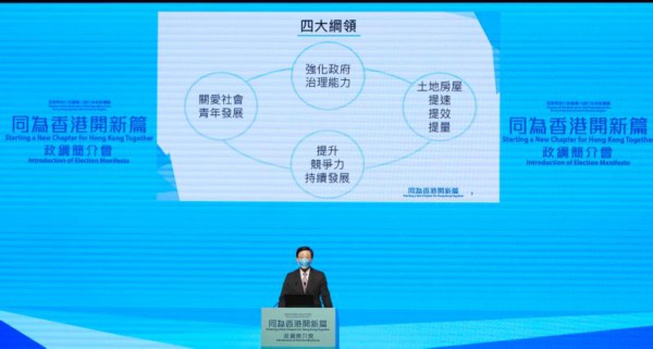 4月29日,李家超公布竞选政纲。新华社记者 吕小炜 摄