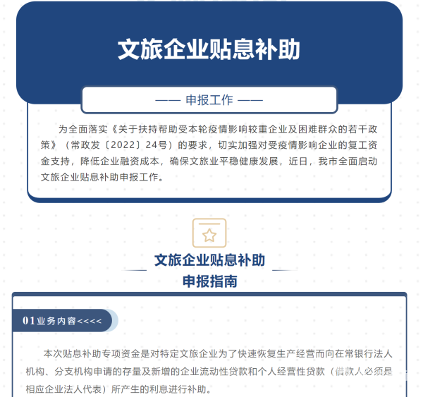 为帮助文旅企业纾困解难,常州文广旅局发布了六项措施,包括加大产业资金支持力度,重点对文旅融合新业态、新产品项目及3A级以上景区、省级以上乡村旅游重点村予以扶持;加大金融扶持力度,设立贴息补助专项资金;举办文旅惠民系列活动等。