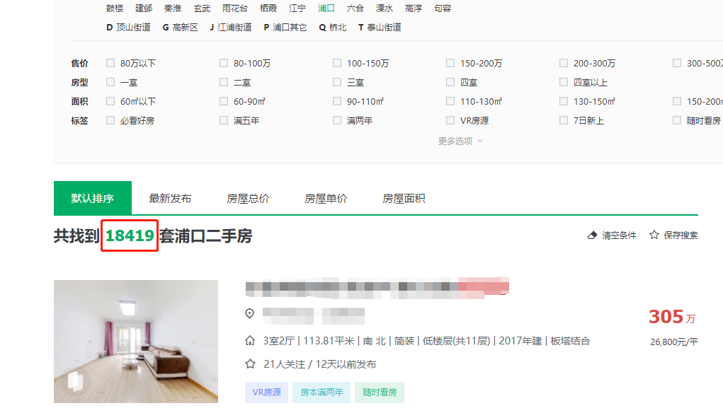 在南京一家大型中介机构的官网上,记者看到目前南京浦口板块的二手房待售数量为18419套,而在“银四”末尾时,浦口的二手房可售套数约为17500套左右,不到半个月时间增长了近1000套。市场人士介绍,正常情况下浦口的二手房挂牌量月均在1500套上下,近期的“涨势”或与新一轮的楼市政策调整息息相关。