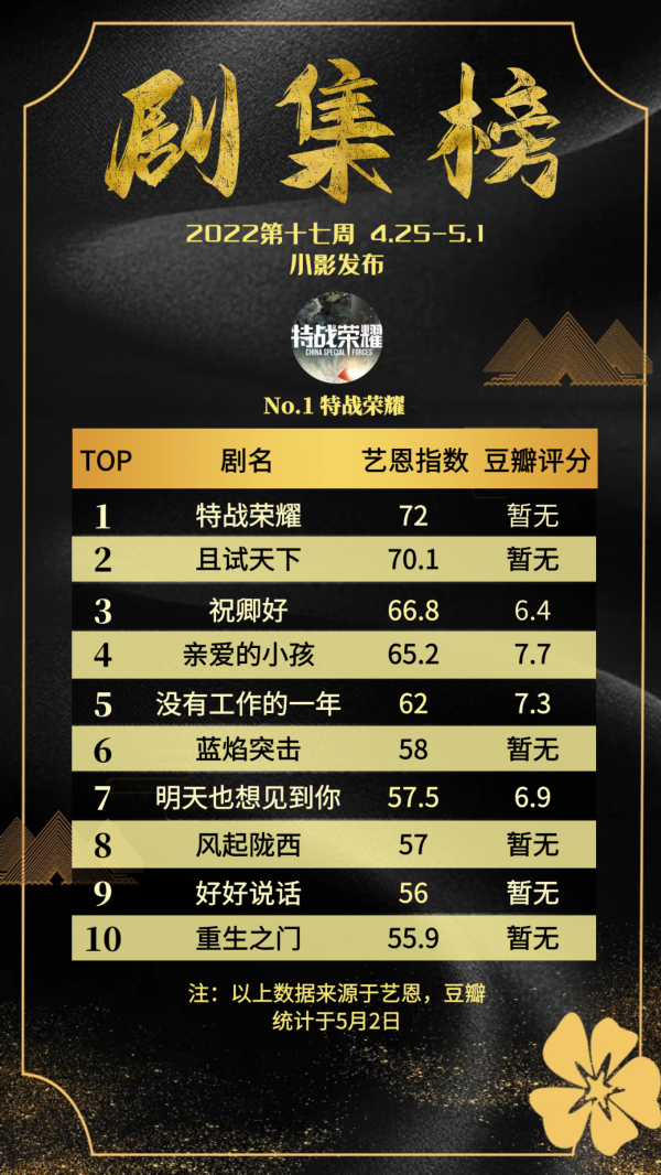 五一假期,大量宅家人群,不少新剧都瞄准了这一市场空间。《特战荣耀》《且试天下》《祝卿好》《亲爱的小孩》热度依然稳定前列。本周新剧中,悬疑题材再度登场,《重生之门》张实力派张译+新生代小生的阵容,兼具表演质感和话题吸引力,具有古董国宝、陈年旧案、高科技等多元素卖点,同时,作为王俊凯18年后再度回归剧集的作品,其表现成为热议点之一。
