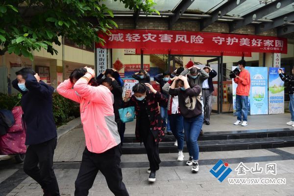 在活动现场,米山社区居民代表及志愿者进行了地震紧急避险培训及震后疏散;市气象局向居民展示移动气象监测站;市红十字会进行了急救知识现场互动教学。