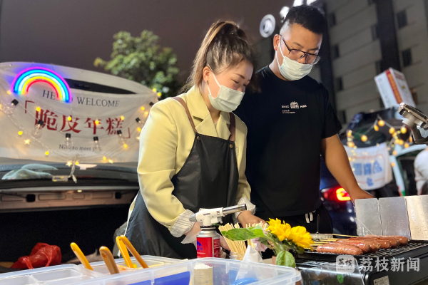 正忙着翻烤面筋的摊主刘女士,白天在一家美容机构做前台,夜幕降临,摇身一变成了后备箱集市摊主。她说,自己平时就有逛夜市的习惯,此番也是受疫情影响,出来兼职期待增加点收入:“同以前的夜市相比,后备箱集市更年轻、更时尚化,一辆车就是一家店,我希望可以持续发展,让城市的烟火气更足。”