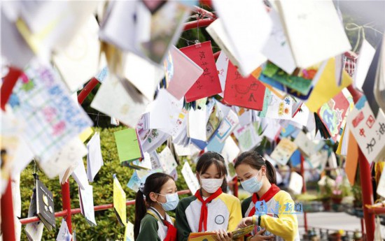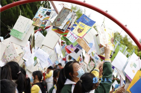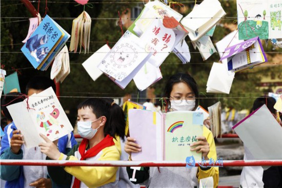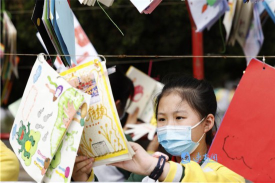 5月12日,在宿迁市泗洪县城区一所学校里,学生制作的精美绘本被高高挂在长廊里,成为一道亮丽的校园风景。为了培养学生动手能力,激发学生的创造力、想象力和表达能力,该校组织学生利用课后延时服务时间,采取手绘等方式,每人制作一本不少于10页的绘本,提升学生的综合能力,助力“双减”。