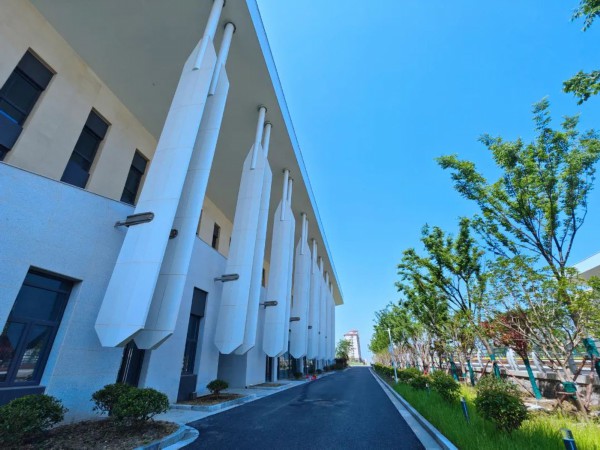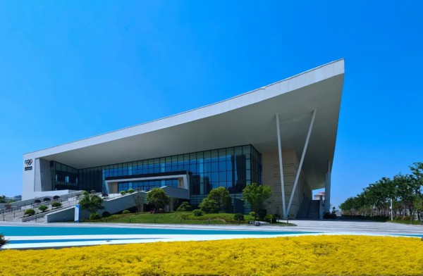 幕墙的设计汲取了里下河水乡溱潼会船特色文化,将溱湖会船里的船形、船桨、竹篙等元素演化变形后与外墙结合在一起。