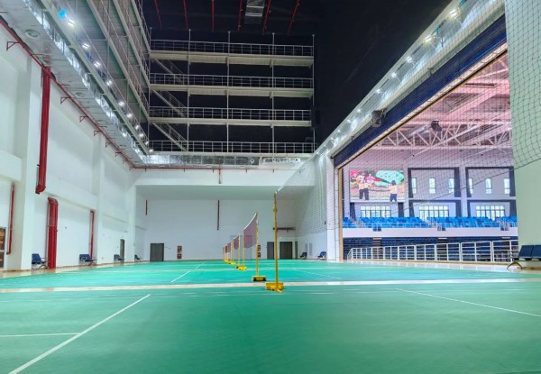 闲时附馆内的6个羽毛球场地可以供市民健身,赛时这里可作为运动员的热身场地,演出时拉上隔帘就是临时后台。
