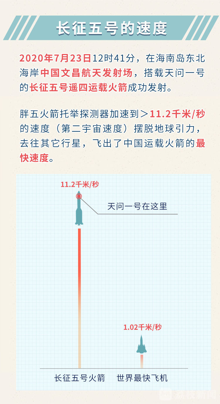 “天问”的问天之路,一开始就是“雷霆万钧”,长征五号马力全开,以超过11.2千米/秒的第二宇宙速度,把天问一号送出地球。