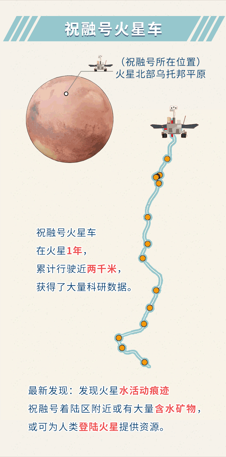 所谓巡视器,就是大家已经耳熟能详的祝融号火星车,在火星上一年,它开出去有多远呢?