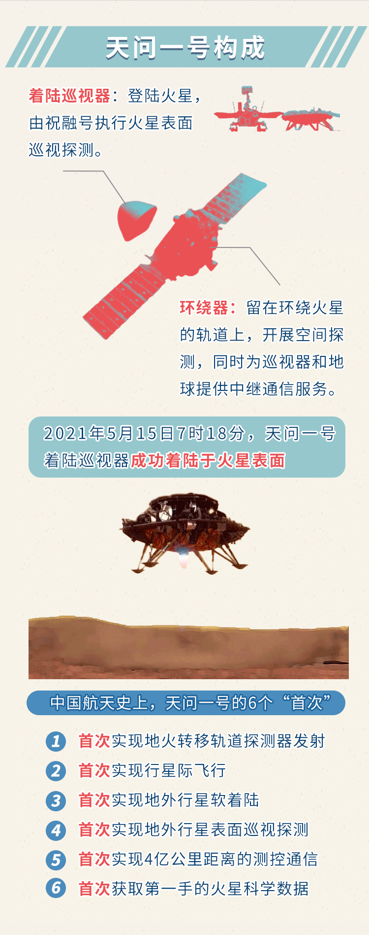 2021年5月15日的成功落火,意味着天问一号的几个组成部分开始在火星轨道和陆地表面分工合作,仔细探索这颗神秘的星球。