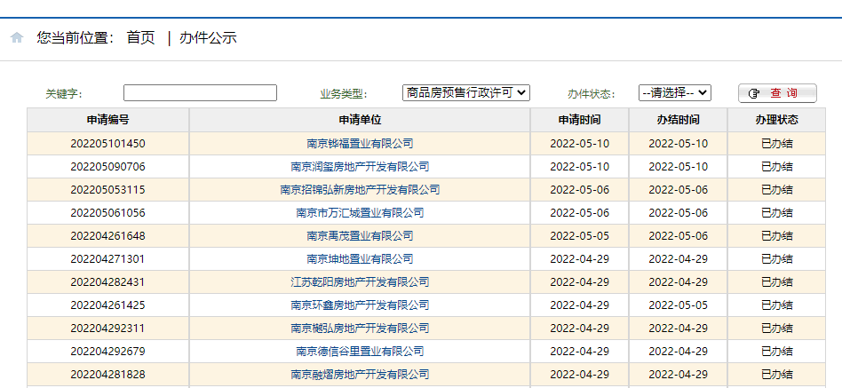 在南京市住房保障和房产局的官方页面上,进入5月后申领销许的楼盘只有5家,最新的申请时间是5月10日,也就是说,南京近一周以来没有楼盘申请预售证,与往年楼市“红五”积极入市的场景对比明显。市场人士介绍,近期南京对限购范围、限售时限、二孩及以上家庭的购房“门槛”等进行了多轮调整,旨在优化楼市调控政策、支持刚需及改善型买家的购房需求。由于调整执行时间较短,市场观望气氛依然浓厚,因此开发商对于房源入市相对保守,以等待合适时机。