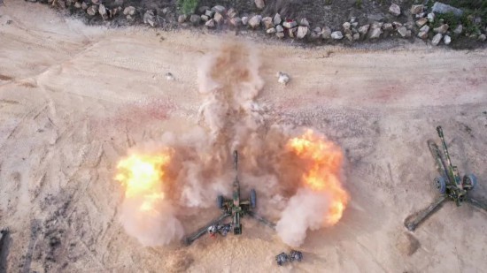 炮弹呼啸出膛直击目标