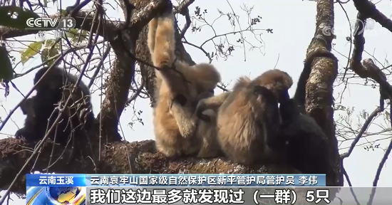 云南哀牢山国家级自然保护区新平管护局局长 郭斌:至少是有154群的(西黑冠)长臂猿,保守估计比原来多了30群。