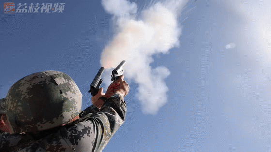 随着两枚红色信号弹射出,考核开始,官兵快速行进至投弹区,在实投阵地,官兵通过撤步引弹、挥臂扣腕将手榴弹投掷到目标区。
