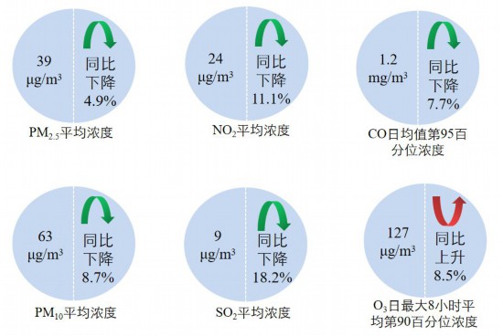 1—4月,全国339个地级及以上城市平均空气质量优良天数比例为85.1%,同比上升1.3个百分点;PM2.5平均浓度为39微克/立方米,同比下降4.9%;PM10平均浓度为63微克/立方米,同比下降8.7%;O3平均浓度为127微克/立方米,同比上升8.5%;SO2平均浓度为9微克/立方米,同比下降18.2%;NO2平均浓度为24微克/立方米,同比下降11.1%;CO平均浓度为1.2毫克/立方米,同比下降7.7%。