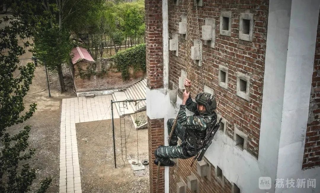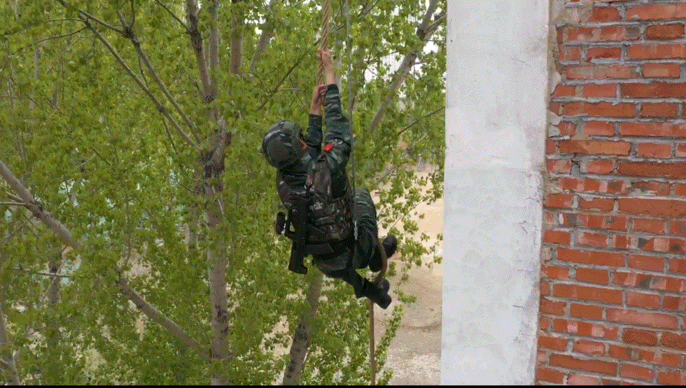 武装攀登是融合体能与技能的课目,特战队员全副武装徒手攀爬18米大绳,辗转腾挪间考验的是特战队员的迅捷、灵活和无畏。