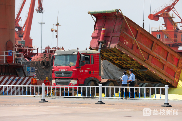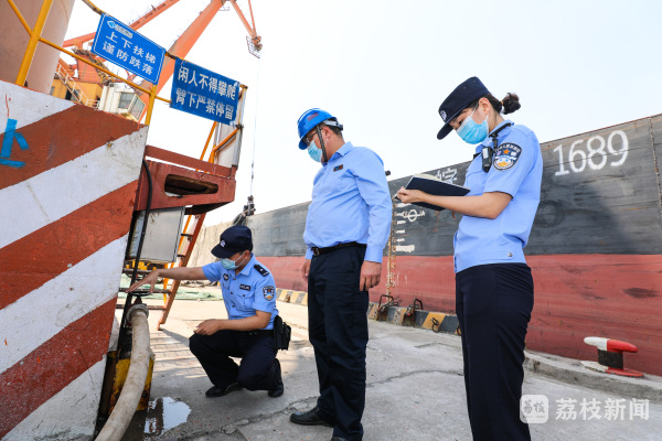 2022年5月18日,长江航运公安局镇江分局镇江派出所民警深入辖区码头开展易制爆品安全检查,并详细询问了重点码头单位的安全管理、硫磺堆场作业等情况。
