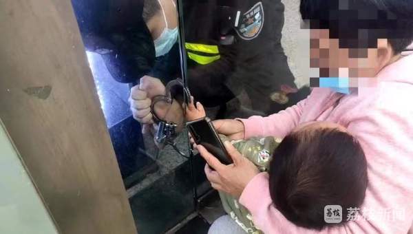 5月11号下午5点多,南京市公安局玄武分局梅园新村警务站接到市民求助,称孩子的手被门夹住了,取不出来。警务站警长吴超立即赶到现场,当时看到孩子正在哇哇大哭,他的手夹在门缝中,缝隙非常小,手指已经有些肿了。