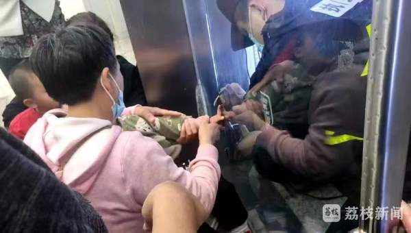 很快消防人员赶到了现场,先用衣服盖住孩子,安抚他的情绪,随后通过撬棍慢慢撑开玻璃,终于将手指拿了出来。