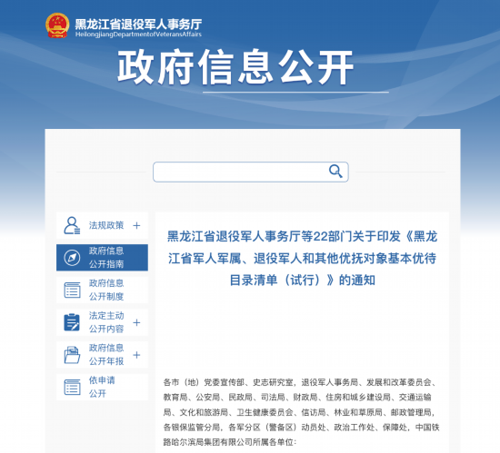 黑龙江省军人军属、退役军人和其他优抚对象基本优待目录清单(试行)