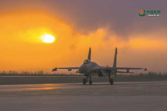 夕阳下,战机返航。