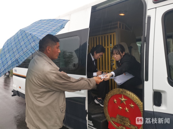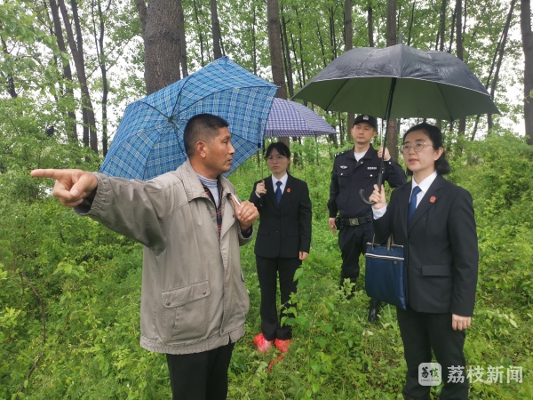 当天下午,法官、书记员、法警和社区工作人员冒着大雨、踩着泥泞小路前往被砍树木所在地,现场听取双方当事人的意见,并根据当事人、村民以及社区工作人员的陈述,法官从维护和睦的邻里关系角度出发,动之以情,晓之以理,现场调解了该起纠纷,被告最终赔偿原告400元树木损失,并当场履行。案结事了,双方满意而归。