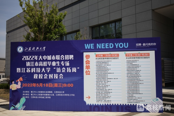 昨天(5月18日),镇江市人社局在严格落实好相关防疫措施的前提下,采取“线上+线下”相结合的形式,举办2022年大中城市联合招聘镇江市高校毕业生江苏科技大学专场活动。本次招聘专场也是今年镇江高校有序解除封闭管理后的首场线下校园招聘活动。
